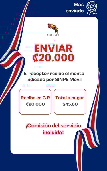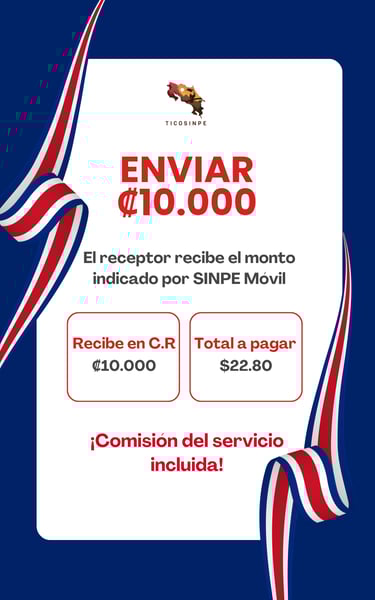 Envía dinero a Costa Rica por SINPE Móvil pagando con tu tarjeta. Sin filas, sin registro y en minutos.